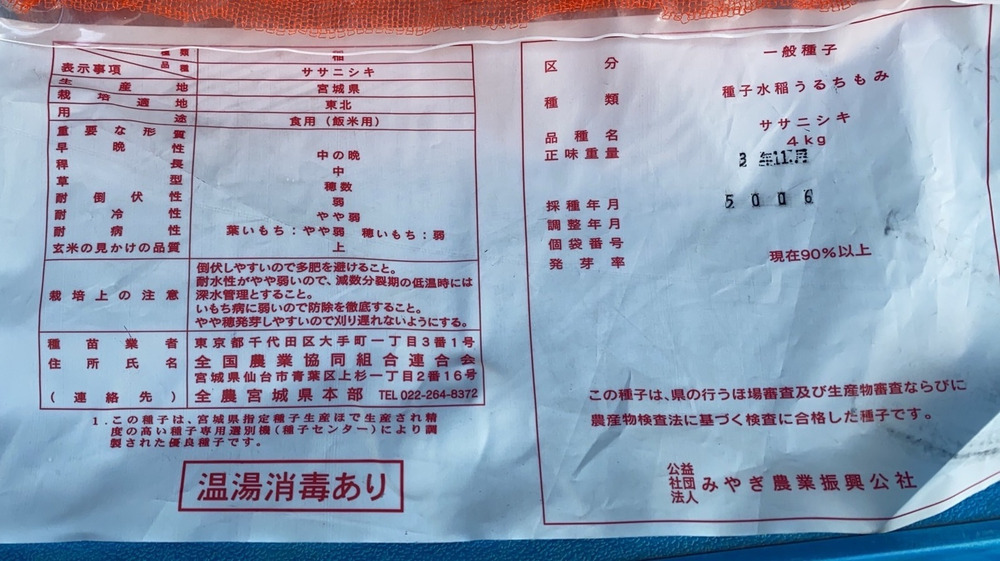 ササニシキ種子届きました🌾