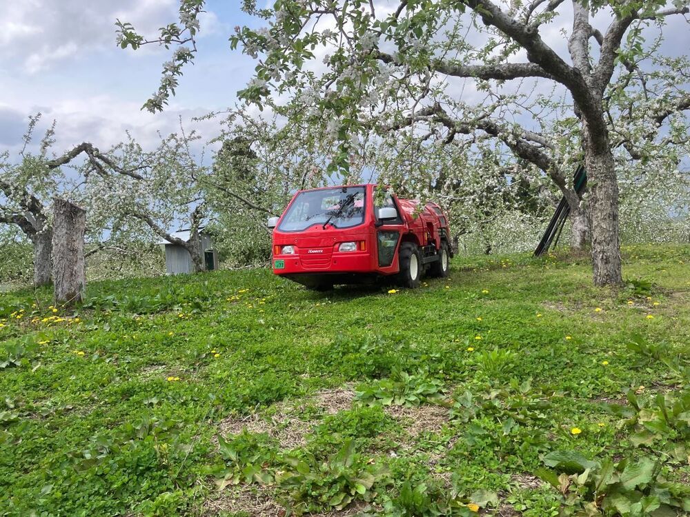 先週はつぼみも多かった畑ではりんごの花が満開です!