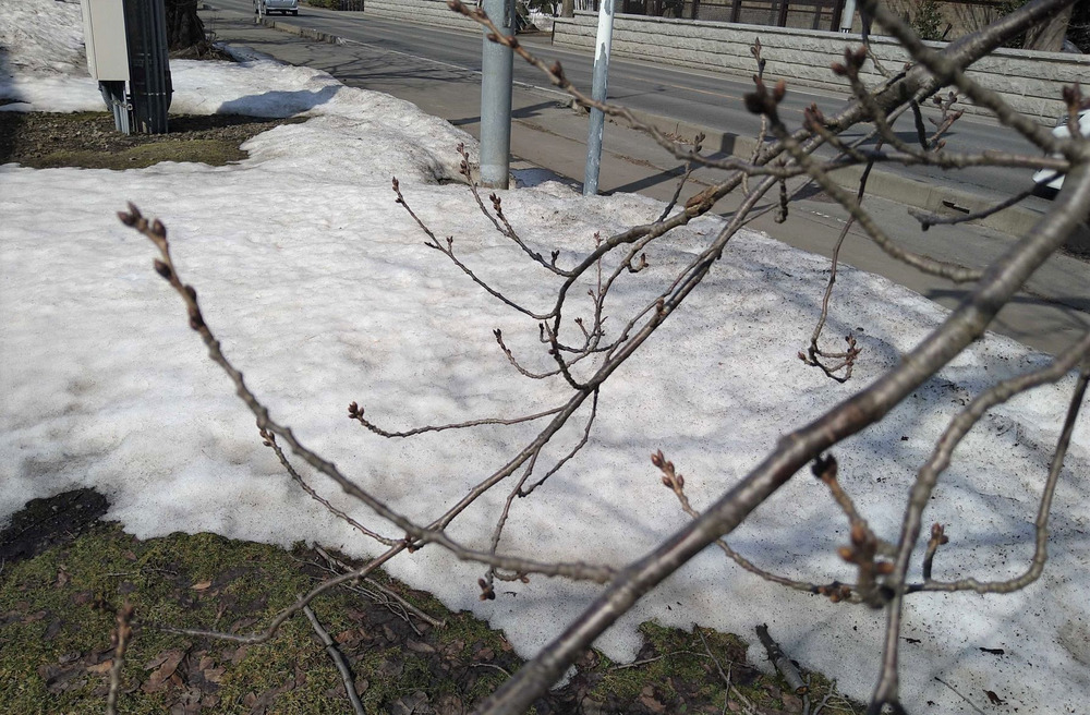 あたたかい日差しのおかげで日なたや車通りの多いところは雪どけが進んできました。