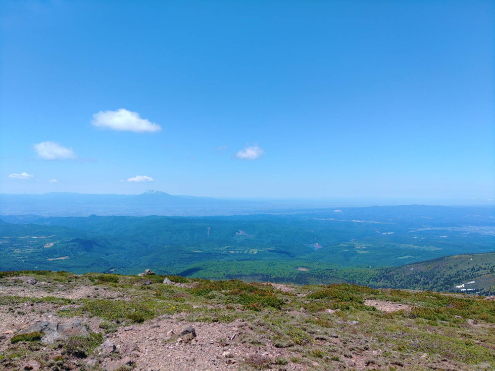 山頂からの写真ですが、奥に見えるのが岩木山でその麓で私たちはりんご生産をしています🍎