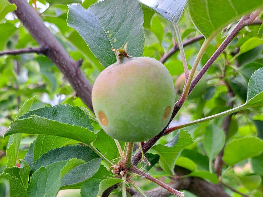 こういった実を摘んで形のいい実に栄養が届かせるのも摘果作業の目的です。