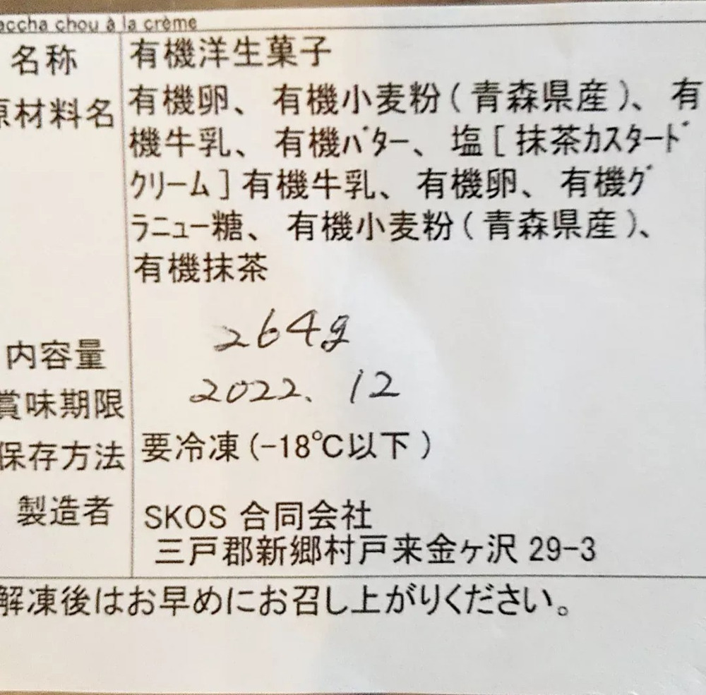 青森県でオーガニック農法で作物を育てながらスイーツを作られているSKOS合同会社さんが当園のお抹茶でシュークリームを作って販売してくださってます(^^)/