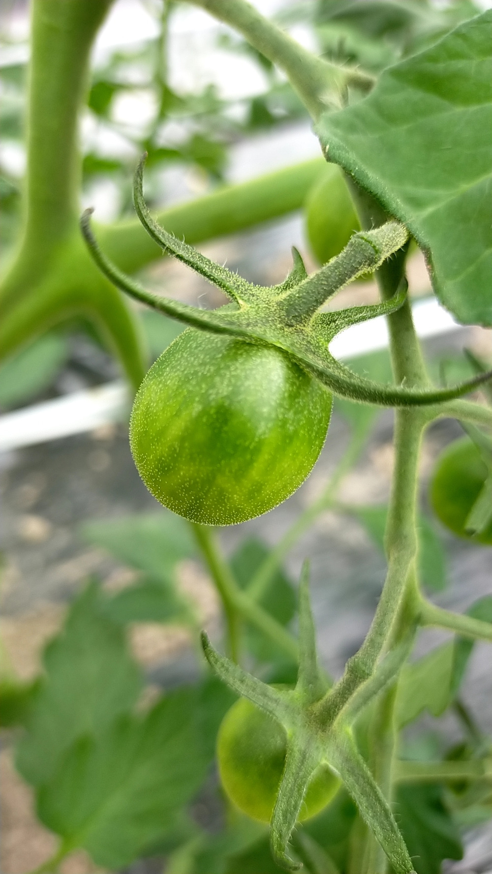 現在ミニトマトたちは順調に生育しており、緑の玉が大きくなってきました。