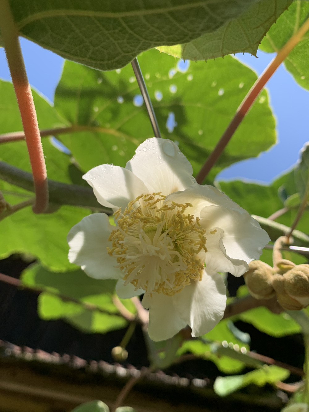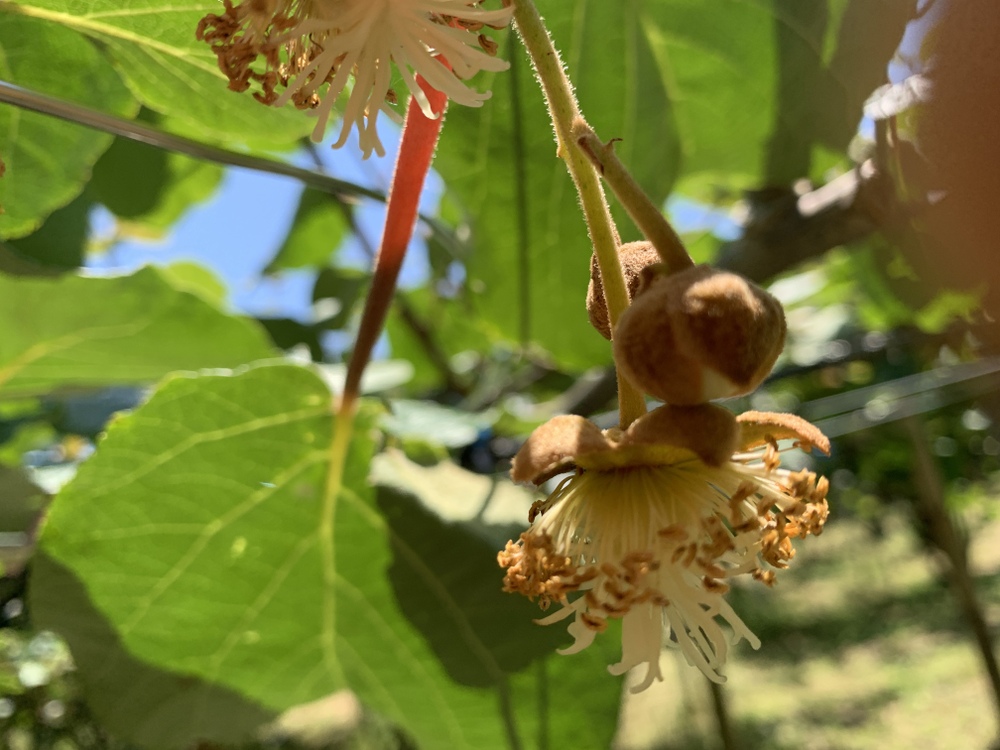 キウイの雄花が咲き乱れ、雌花もチラホラ咲き始めていました。