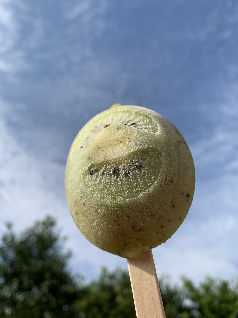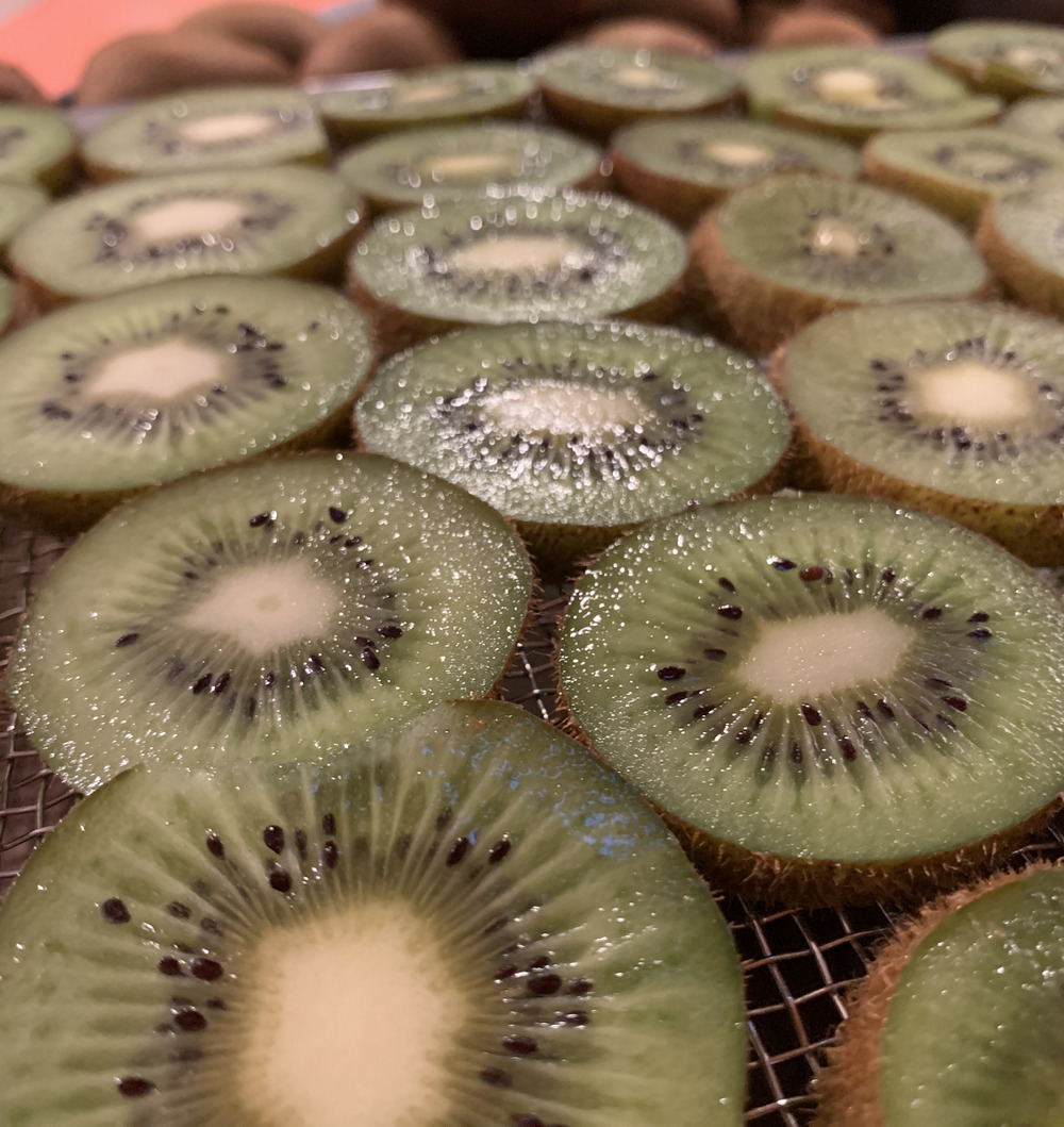 1. 熟したキウイを洗って厚さ5ミリくらいにスライスする。