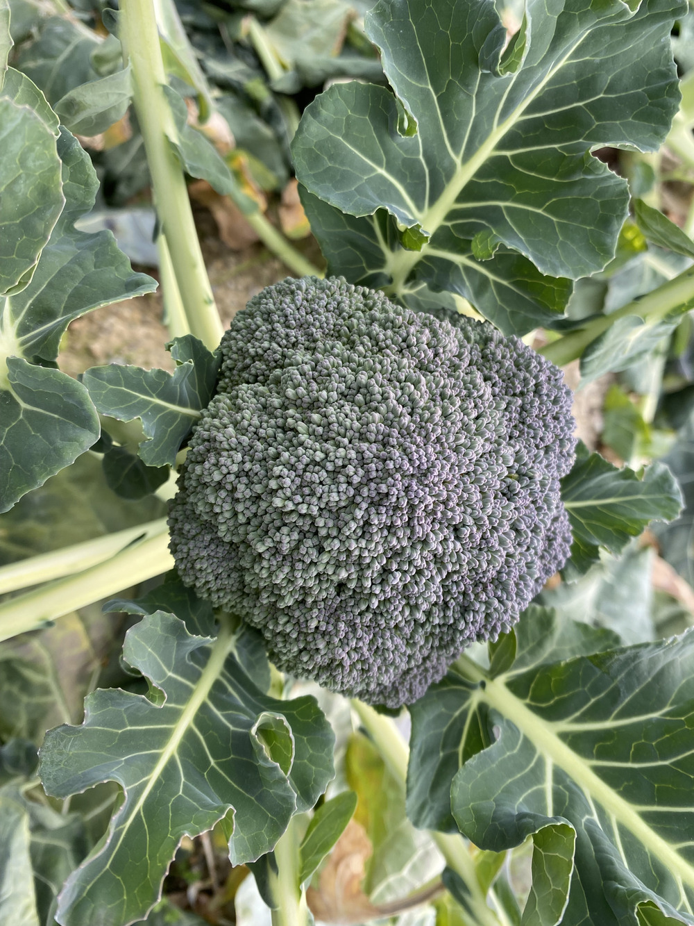 この時期のブロッコリーは、冷え込みの影響で紫色になることがあります。