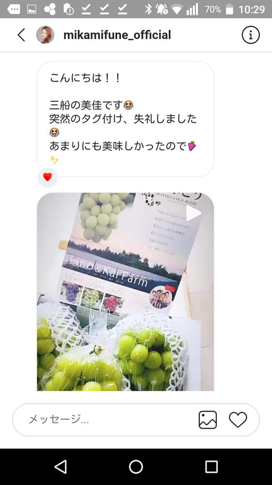 ナイロンコードで草刈りをしてしまい、小石を跳ね上げ、全品種のぶどうの粒へ被害が出てしまい、贈答用はすべてキャンセルさせていただいております。 (Twitter:@LinoFarm)
