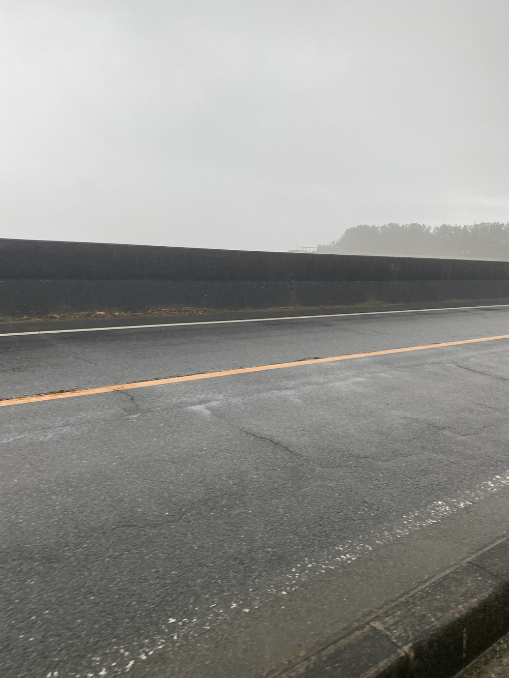海は霧に包まれて、いつも見える向こう岸が今日は見えない。