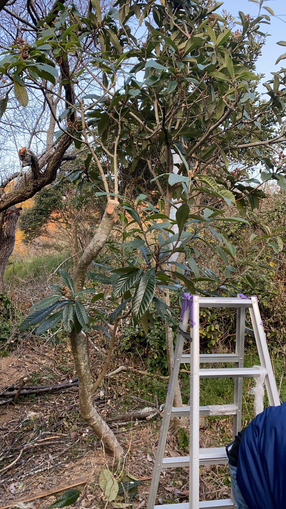 今回夏場は日陰になってよかったびわの木だけど、屋根まで伸びて葉っぱや実が樋に溜ままちゃうのでバッサリ✂️剪定