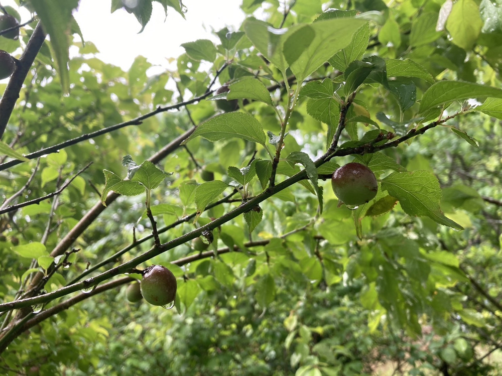 昼間の日差しの強さで汗ばむ陽気になってきました。小梅が赤く染まり出しました。