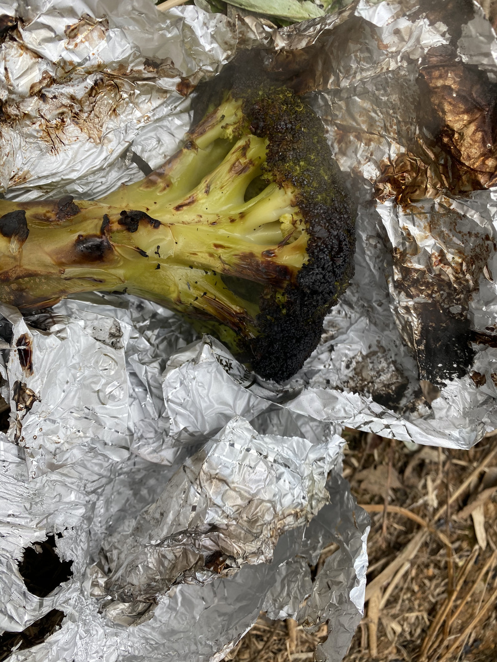 ブロッコリー🥦を焚き火に入れてみました。