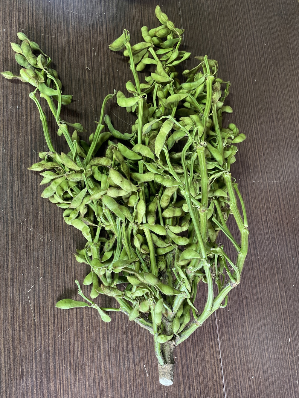 水やりが必要なほど雨不足ではありましたが、ゲリラ雷雨などの影響も台風の被害もなく、さやがしっかり付いています。収穫期間中このまま良い状態を保って欲しいと願うばかりです。