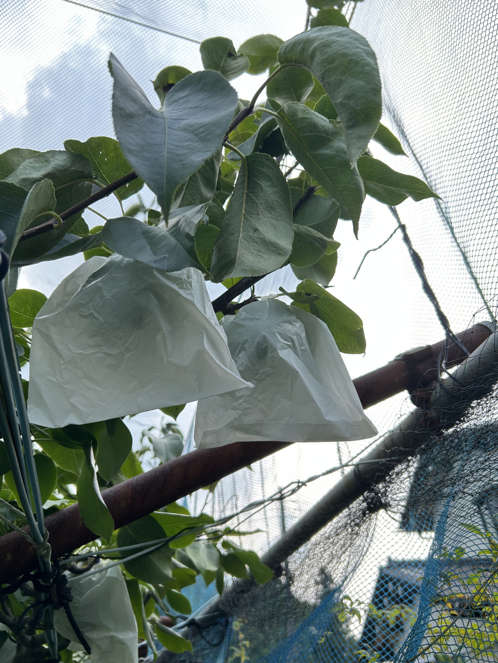 写真は【かおり】という品種です。袋をかけて育てているのですが、どんどん大きく成長してきています!