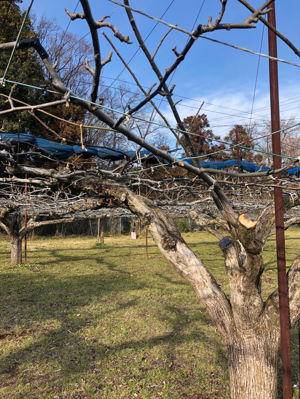 梨の収穫が終わり、葉も落ちると春〜夏の間に伸びた枝が残ります。冬の間はこの枝の剪定が主な作業になります。