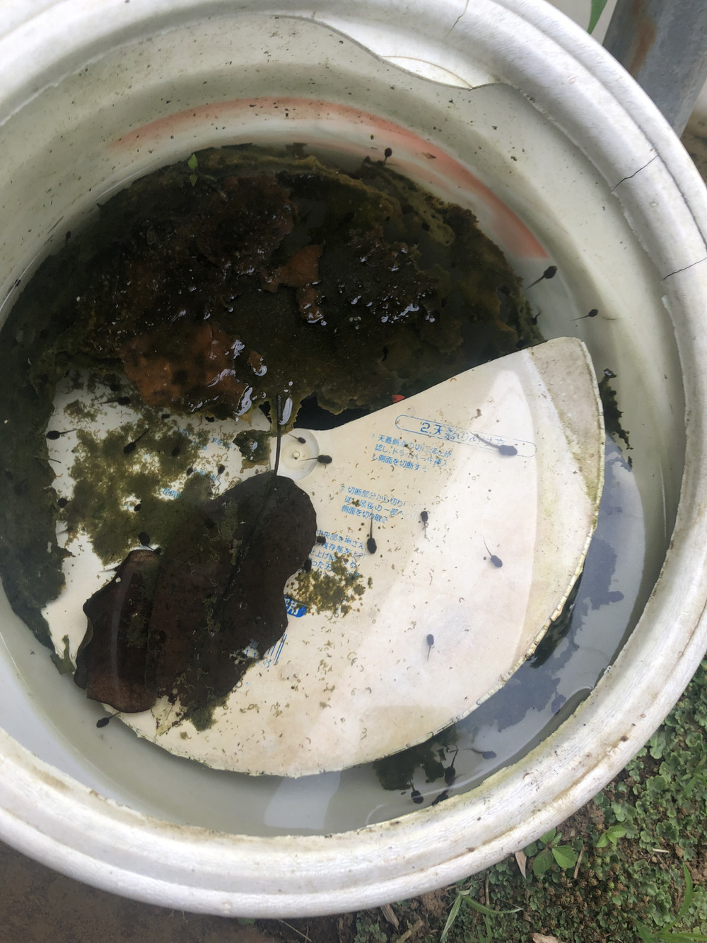 最近はカエルの声が大きく聞こえます。たくさんのおたまじゃくしに孫は大喜びです。