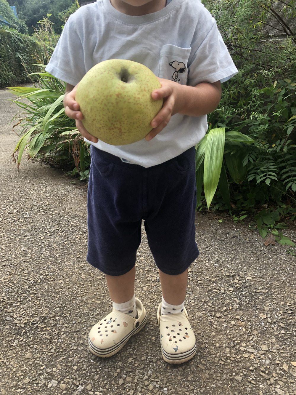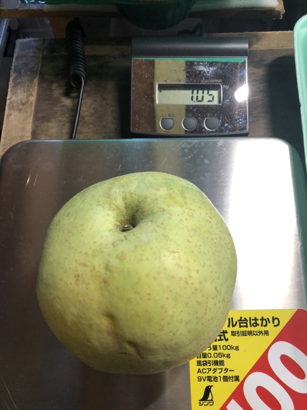 同じカゴに入っている、小さく見えるもので【幸水】のサイズ感です。