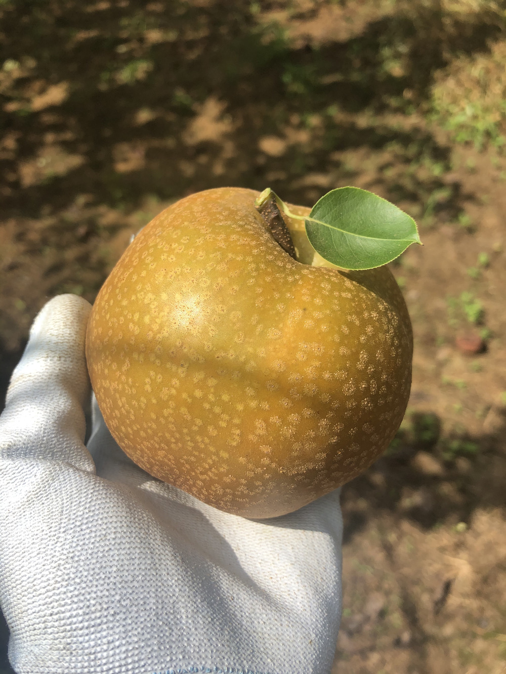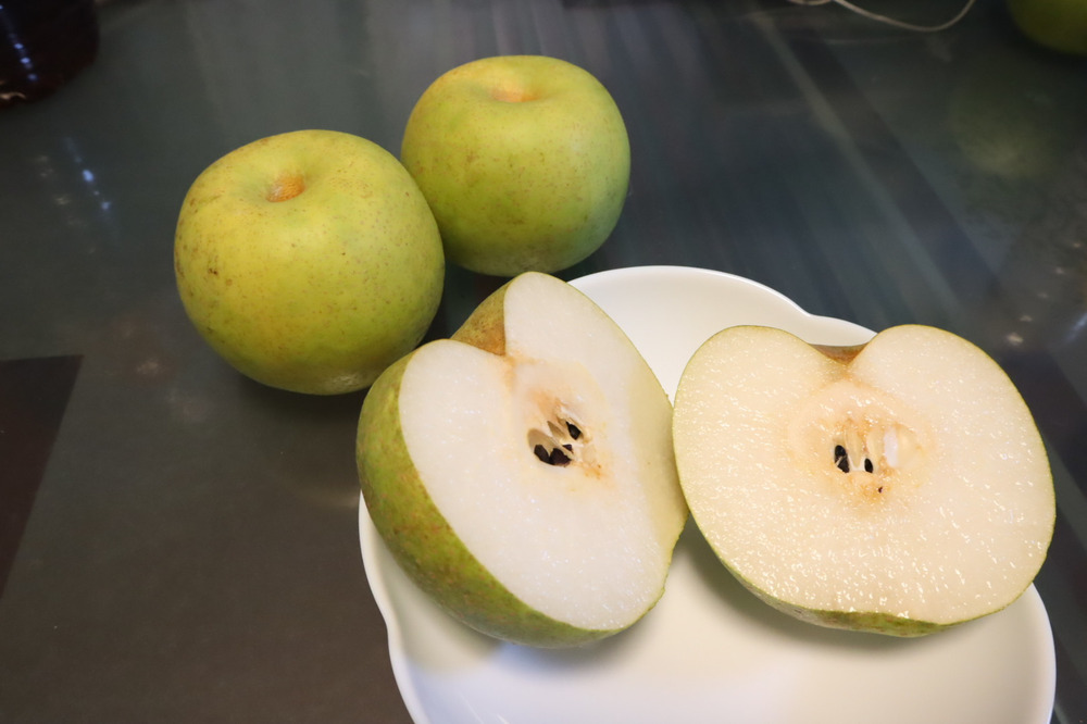 【かおり】は、明るい緑色の果皮が特徴的な梨です。そして何より、名前の通り甘くて良い香り!