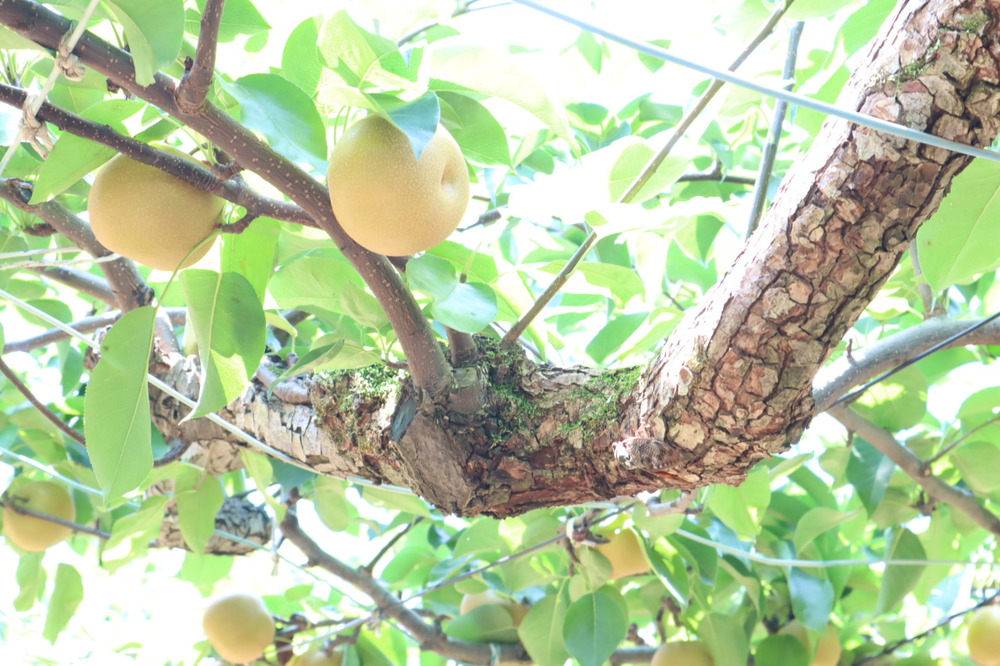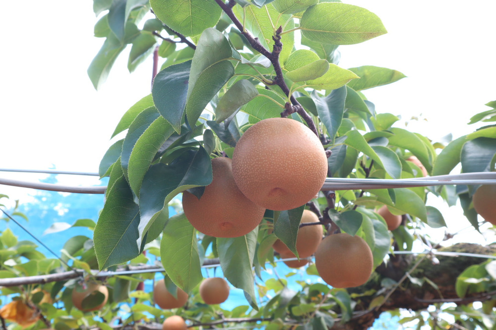 今年も、【豊水】がオレンジに色づいてきました。熟した【豊水】を食べてみたところ、濃厚な甘さになっていました!