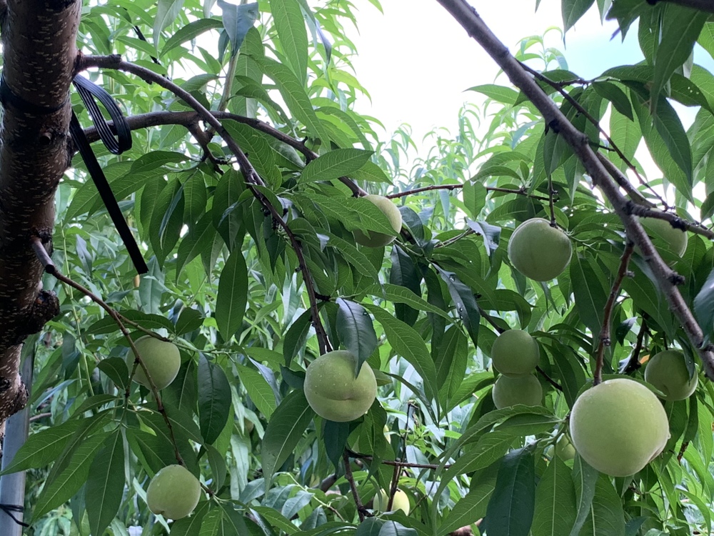 今月末から出荷予定の桃🍑川中島白桃も大きくなって、少し赤みもさしてきました。