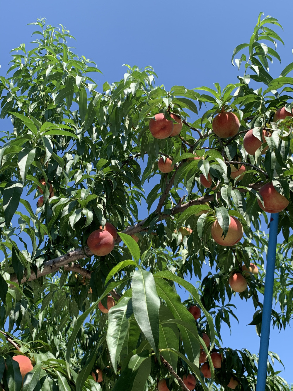 そして、『おどろき』って品種の桃も赤く色づき、そろそろ食べごろですね。