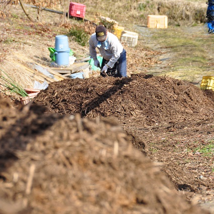 ブルーベリーの園地は水を必要とし、水はけの良い土壌を好むため、土作りから余念がありません。木を粉砕した木のチップを冬の間に園地一面に敷詰める作業をしています。そのため園地の土はいつもふかふかです!
