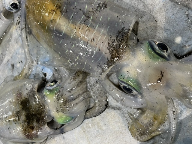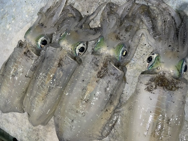 水イカ(アオリイカ)・・・綺麗な海にしか生息しない女王様。鉄腕DASHでもたまに出てくるのでご存知のかたも多いかも。目元のアイシャドーは鮮度の証。身も透明感があり、プリっとしながらもねっとりとした食感は感動します。