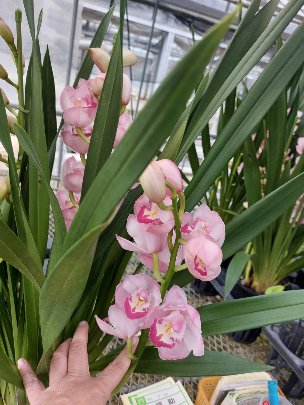 当園のシンビジウムはほとんどの品種でアーチ仕立てを作ってるので、大抵の色は揃えています。(ピンク、黄色、白、グリーンなど)