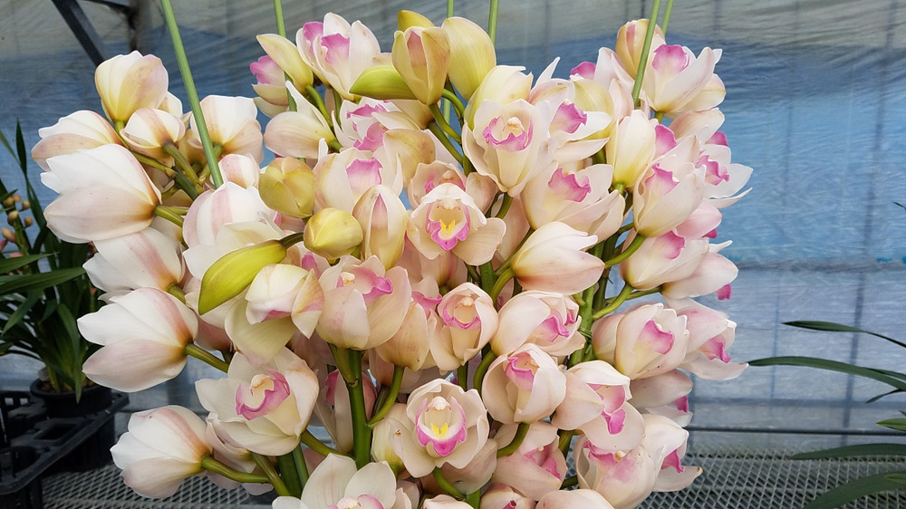シンビジウムの切り花をお客様に発送するために、ピンクペルペチュエルを切ってきました。