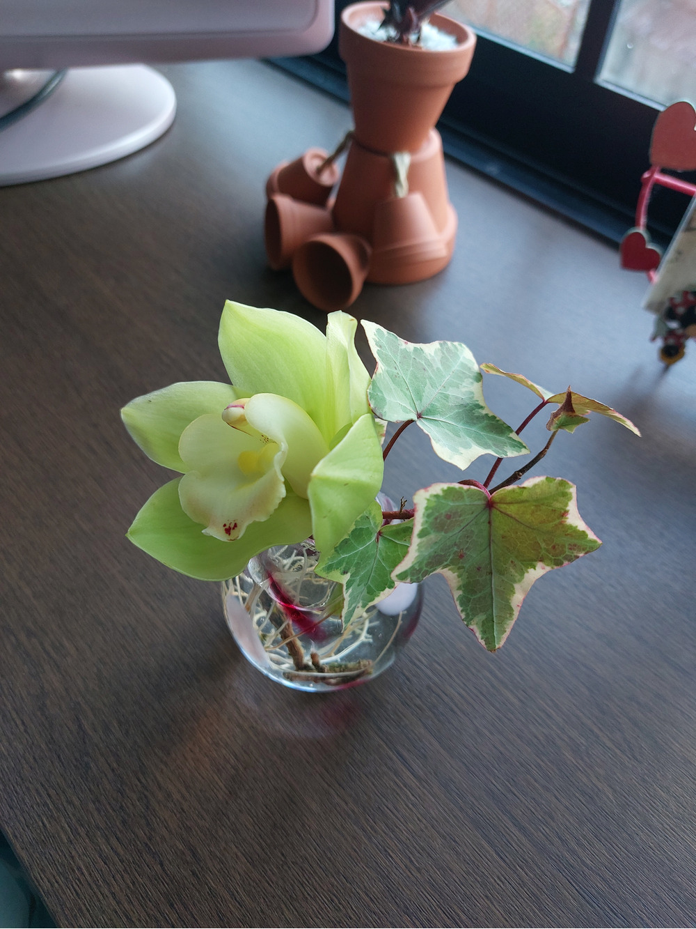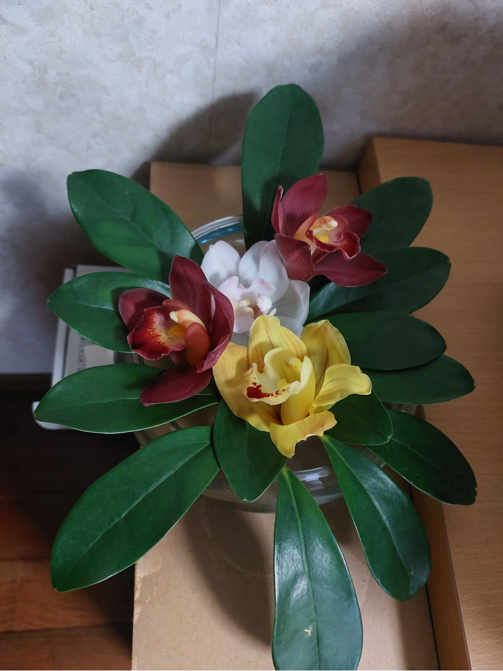 もしかしたらシンビジウムを飾ることに慣れている方もいるかと思いますが、私は苦手なのでぜひみなさんに上手な生け方を教えていただきたいです(笑)