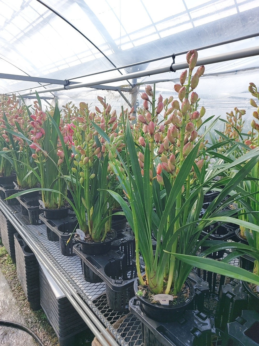鉢花については、ハウス内は外とは違ってぽかぽかですので、寒波明けから開花するように調整中です。2月上旬までは販売予定です。