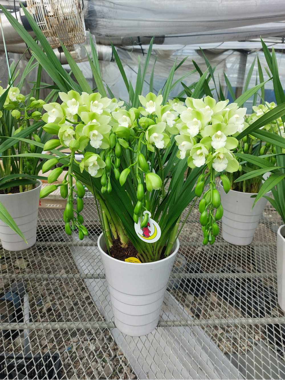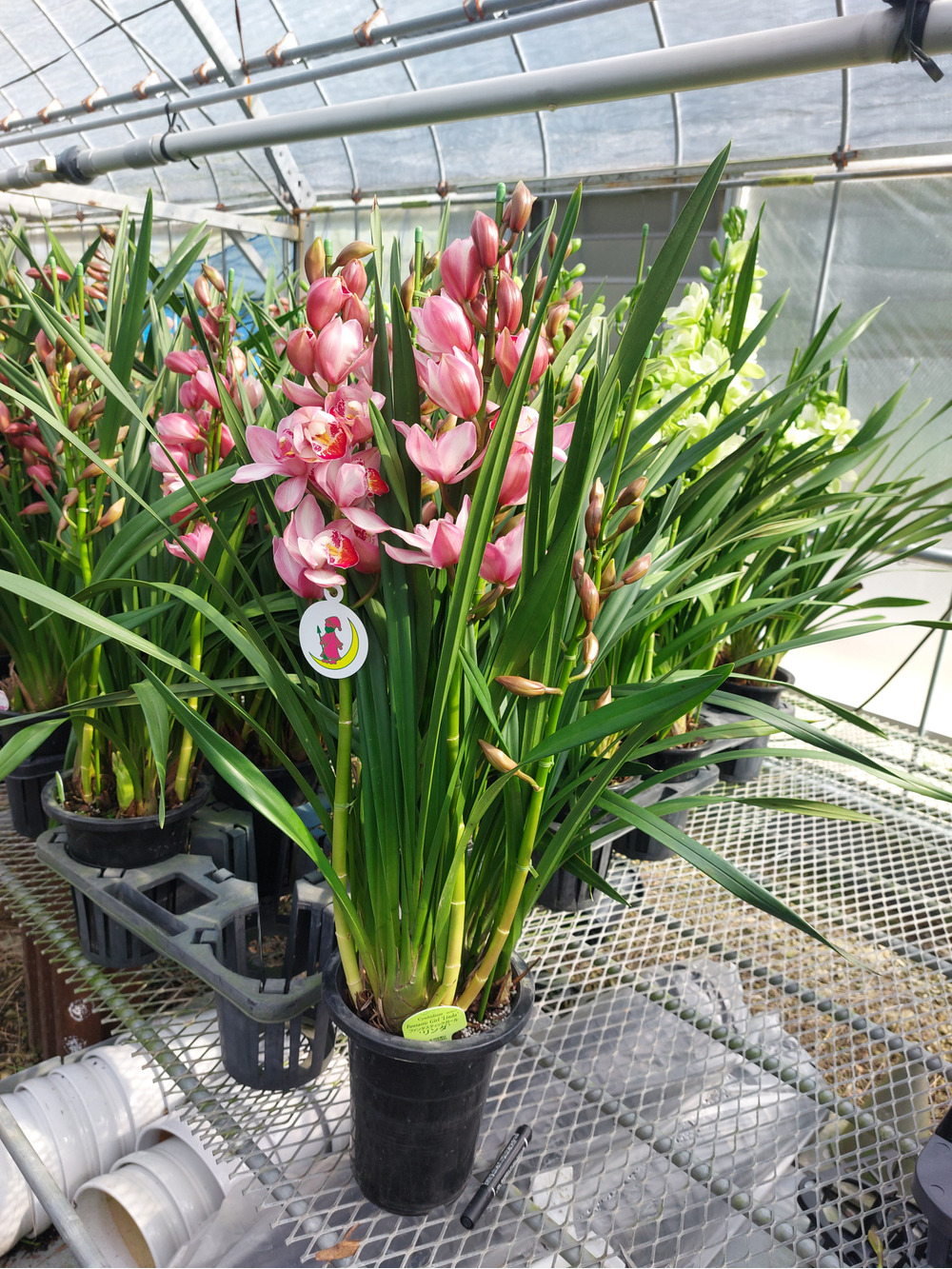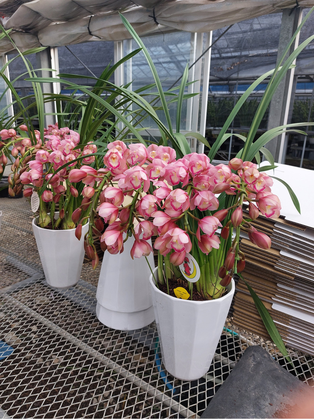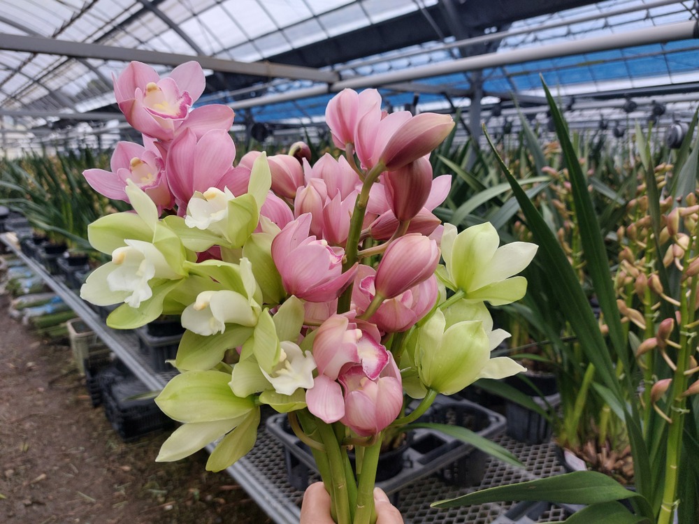そんな中、シンビジウムたちは当園のある圃場よりも少し涼しい避暑地ですごし、花をつけてこちらに帰ってきました。