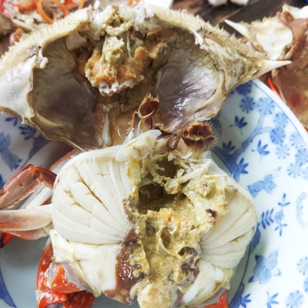 さて、以前よりご要望の多かったワタリガニのメス大/特大の1kg(2or3杯)をリリースしました。全部内子とは限りませんがテスト的に食べたときの写真はこちらです。