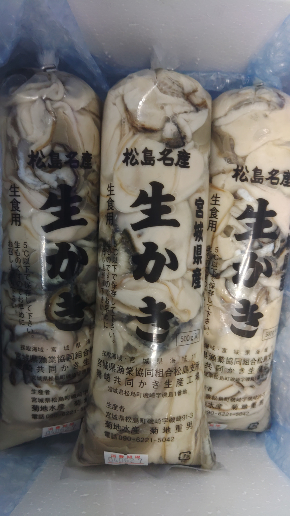 写真は今日出荷の牡蠣の写真です。色淡いクリーム色で一番いい色してます!