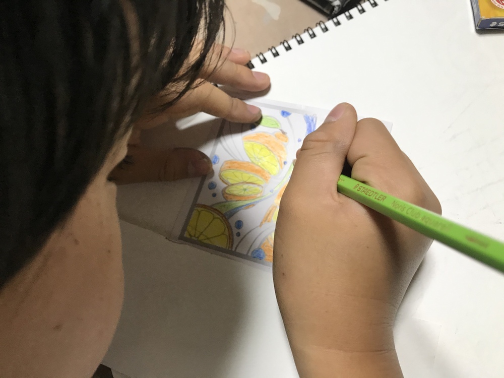 写真は長男カノのぬり絵。