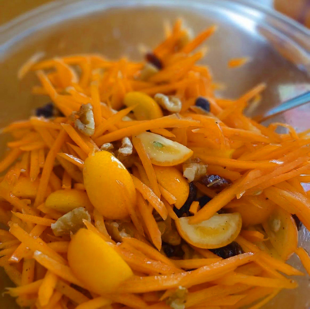 ニンジンとキンカンのサラダ クルミとレーズンも加えて、