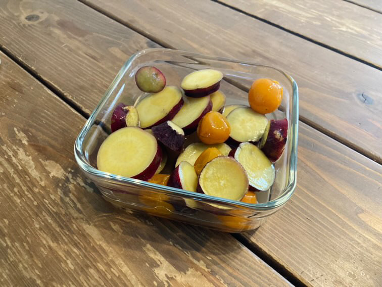 ハナウタカジツさんのキンカンで作り置きした甘露煮のシロップで、basesidefarmさんのシルクスイートを甘煮にしてみました。