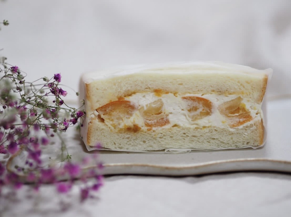 金柑ジャムをパンに塗り、ヨーグルトホイップと、生で美味しい金柑の実をごろごろ入れます