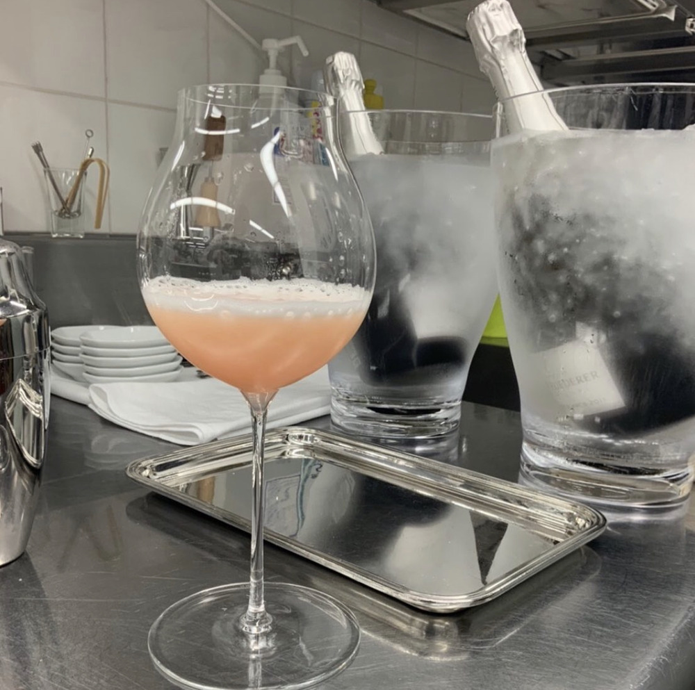 ハナウタカジツの桃を使った大人のかき氷カクテル。