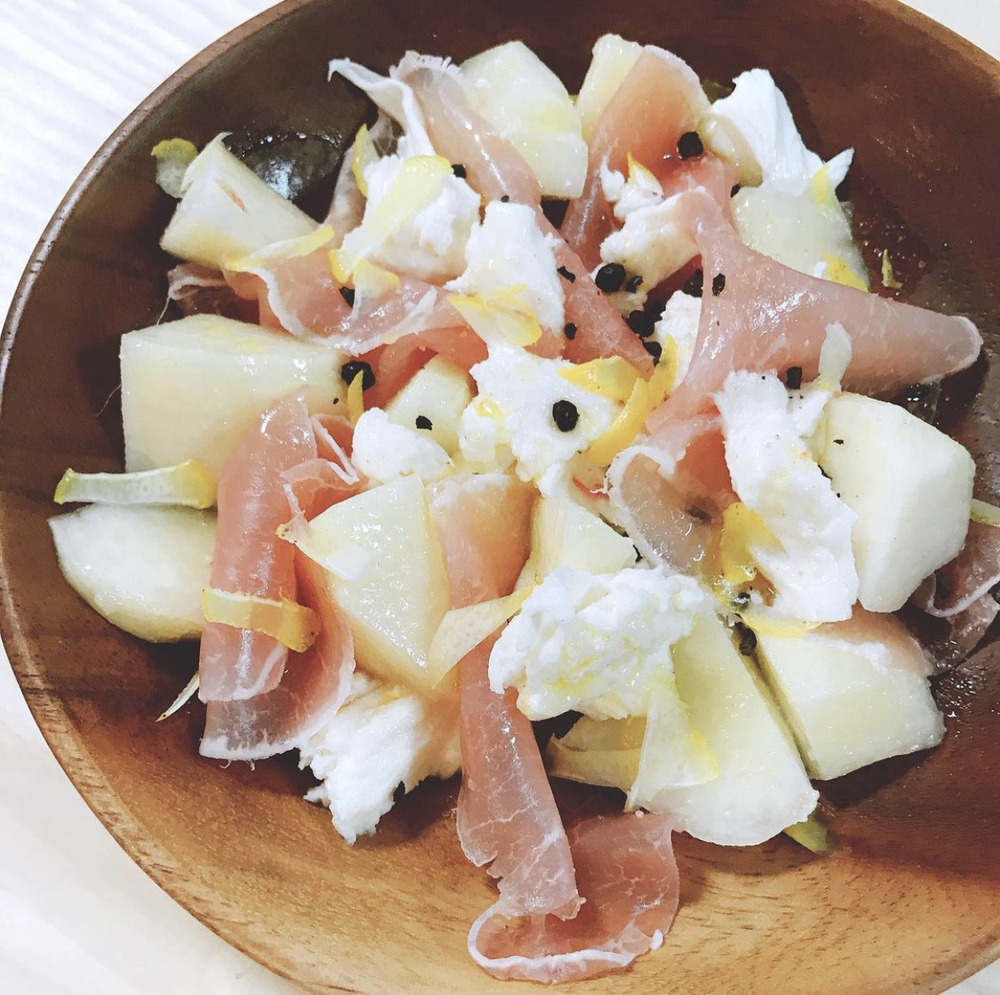 桃と甘さと生ハムとモッツァレラチーズの塩味