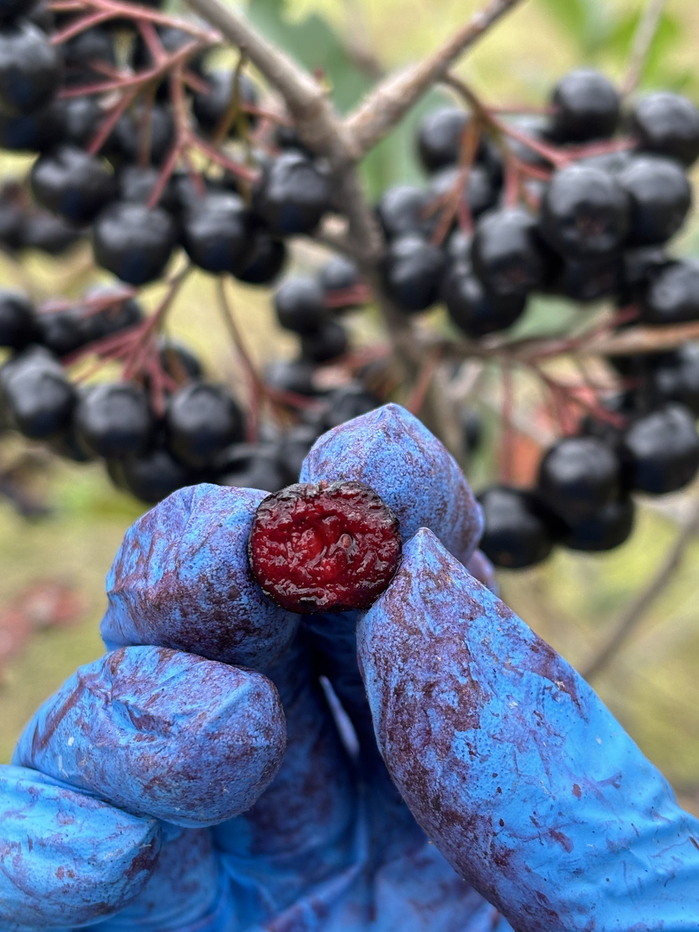ポリフェノールたっぷりのアロニアは中まで真っ赤です😊