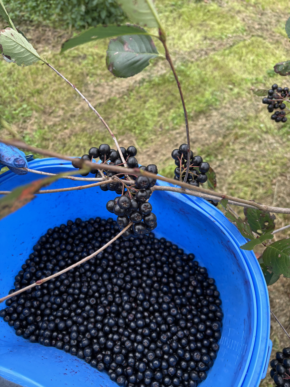 アロニアの果実も黒く色づき、今年も収穫の季節を迎えました。