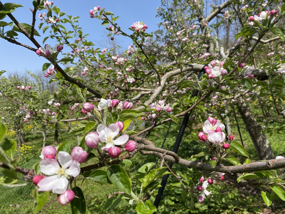 ここ数日寒い日が続き、りんごの花の開花が少しゆっくりになっておりましたが、今日はポカポカ春日和で蜂もプルーンの受粉に活躍してくれてます!(1枚目の写真)