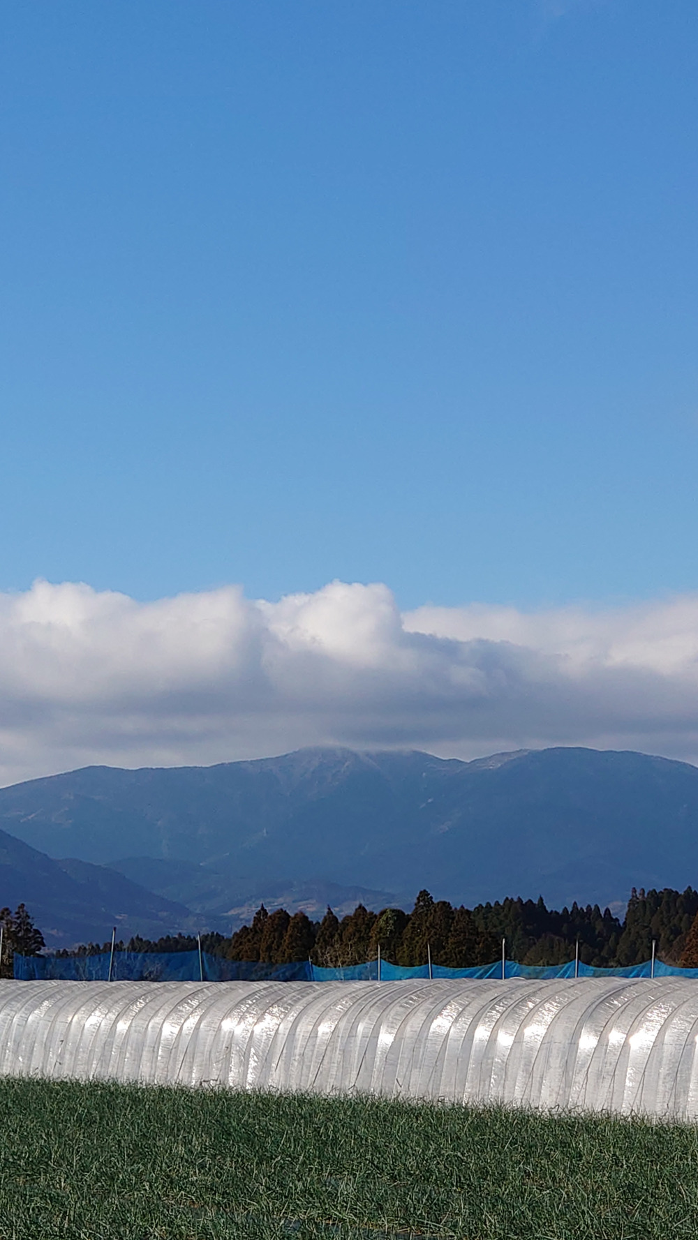 私たちのビニールハウスは小高い丘の上にありますが周辺の山に冠雪を確認できました🏔