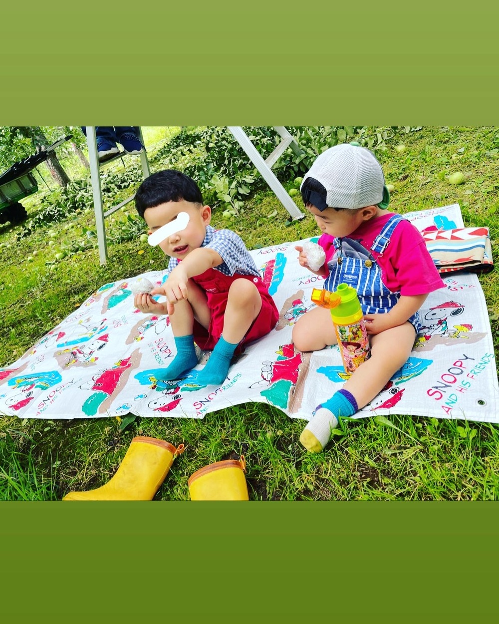 先日、朝からうちのズル助達がりんご畑に遊びに来ました😊ピクニック気分でおにぎりを食べて、その後は自由に走り回ってました❗️暑いのによく遊ぶな〜と親は関心しながら仕上げ作業に励むのでした😅次はスイカ収穫したらかな❓
