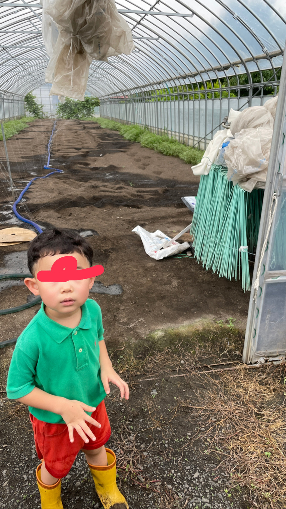 今日は遅れに遅れた冬ネギの植え付け準備❗️ハウスの土が乾き過ぎて4,000㍑撒いても全然足りませんでした😭また時間が空き次第散水します💦写真は水浴びに来てた長男笑