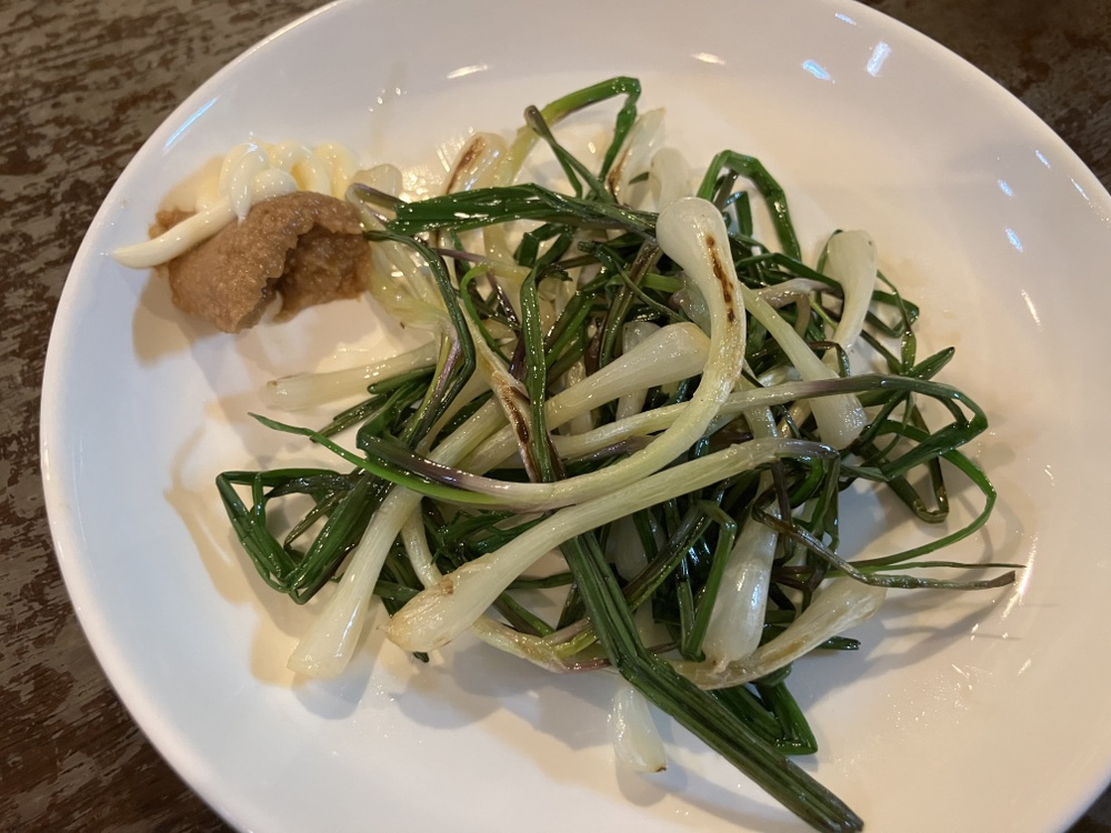 焼いた島らっきょうを味噌とマヨネーズディップで食べると病みつきになります。