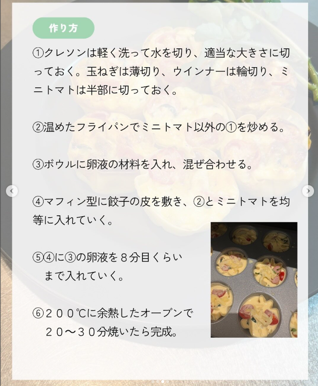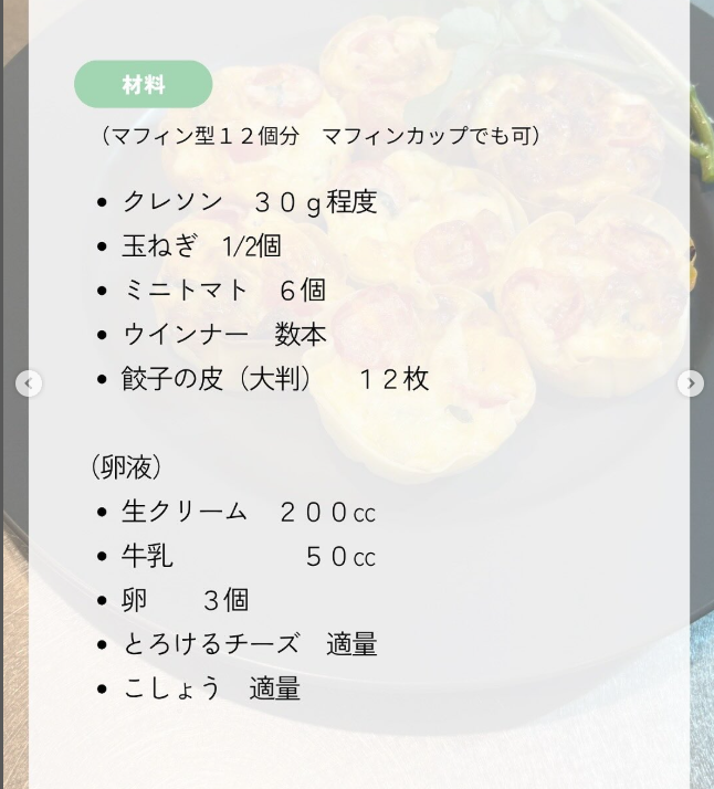これは餃子の皮を使った、なんちゃってキッシュ♩