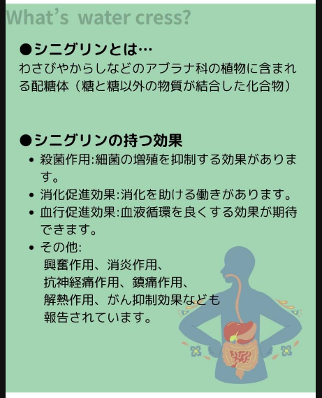 辛味のもとは、このシニグリンの成分ですが、消化を助けてくれたり、がん抑制効果も報告されている、素晴らしい成分なのです
