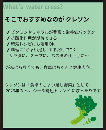 そこでおすすめなのがクレソンです🌱 手軽に使えて、栄養も豊富!