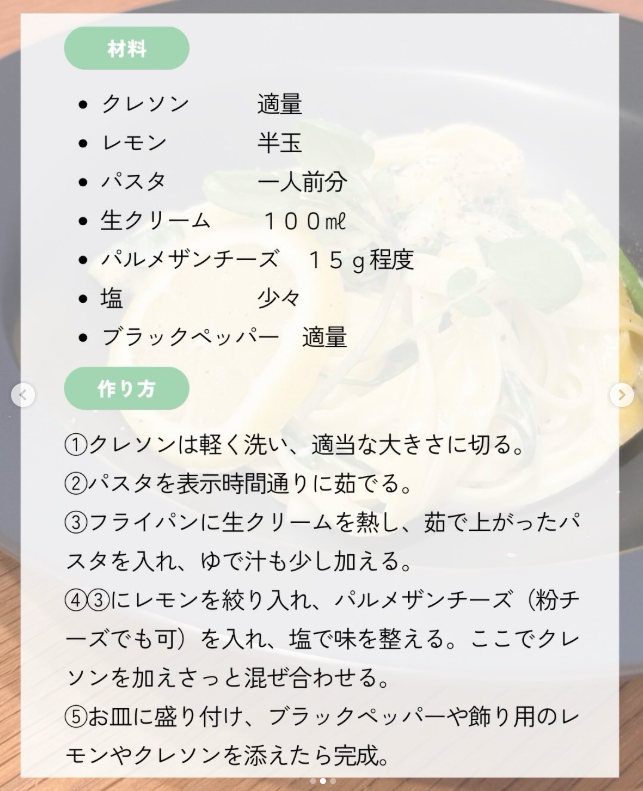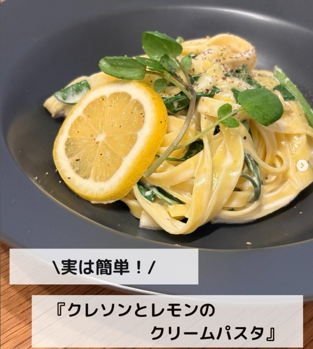 おうちカフェ気分🍝「クレソンとレモンのクリームパスタ」🍋🌿